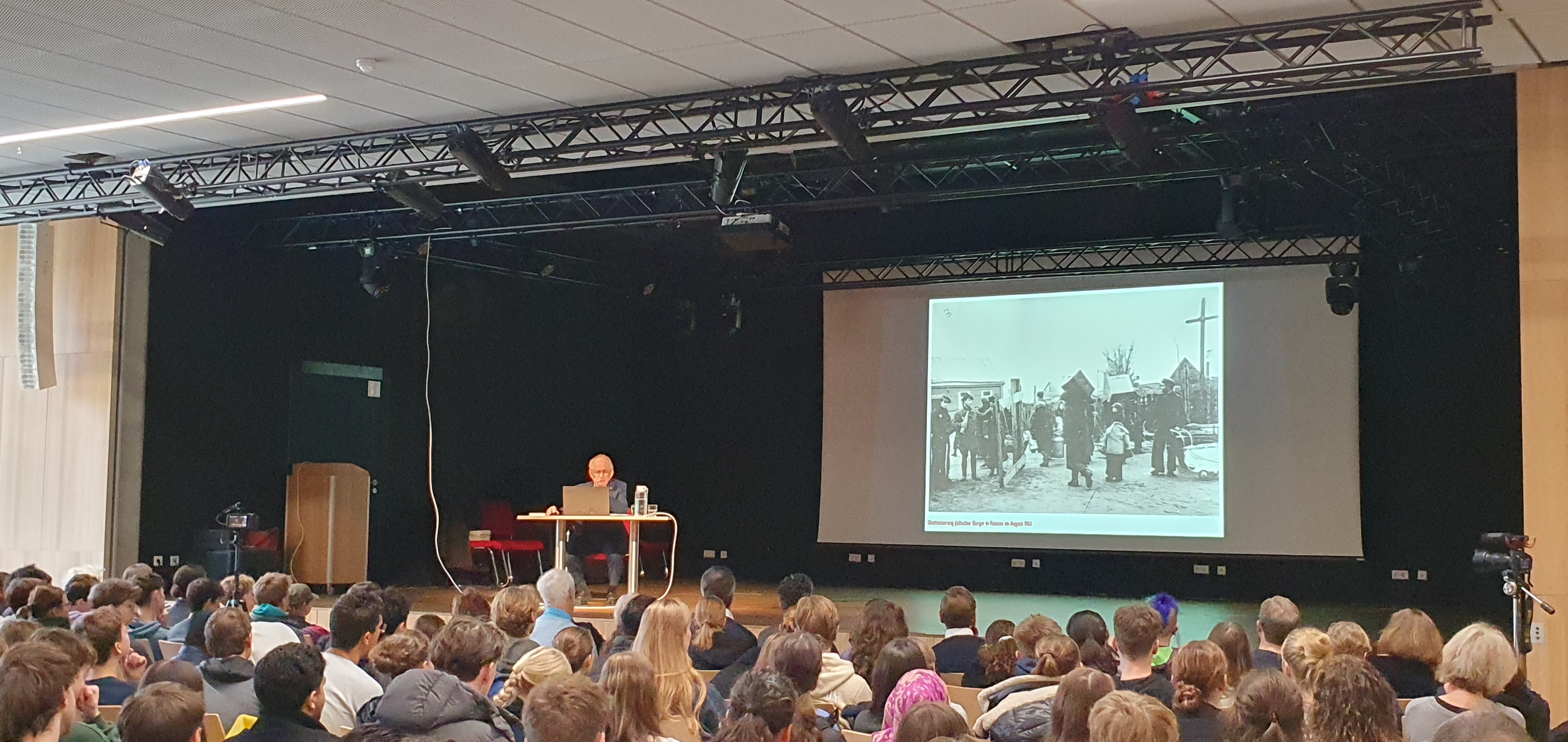 Am Donnerstag, den 16.10.2025 war der Holocaust-Überlebende Abba Naor zu Gast am Rupprecht-Gymnasium. Er hat dort allen 10. und 11. Klassen, sowie einem Teil der Oberstufe seine bewegende Lebensgeschichte erzählt und anschließend Fragen der Schülerinnen und Schüler beantwortet.